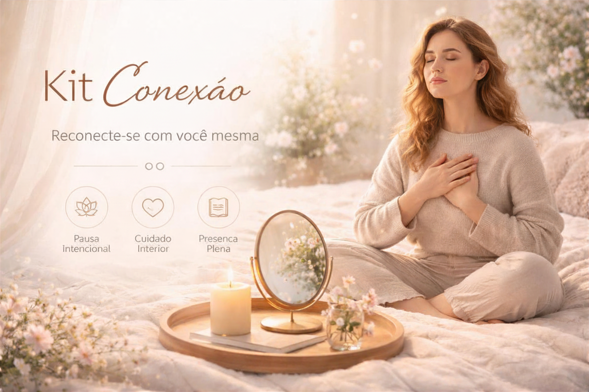 Há momentos em que o que mais precisamos não é de fazer mais, mas de sentir melhor. O Kit Conexão nasce como um lembrete sutil de retorno, a si mesmo ou ao outro através de pausas conscientes, gestos delicados e presença real.